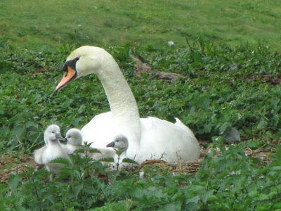 The dingle was quiet today and the 8ft high heron sculpture gazed down on a visiting heron feeding in the lake, but then the bird flew off away up into the trees.
